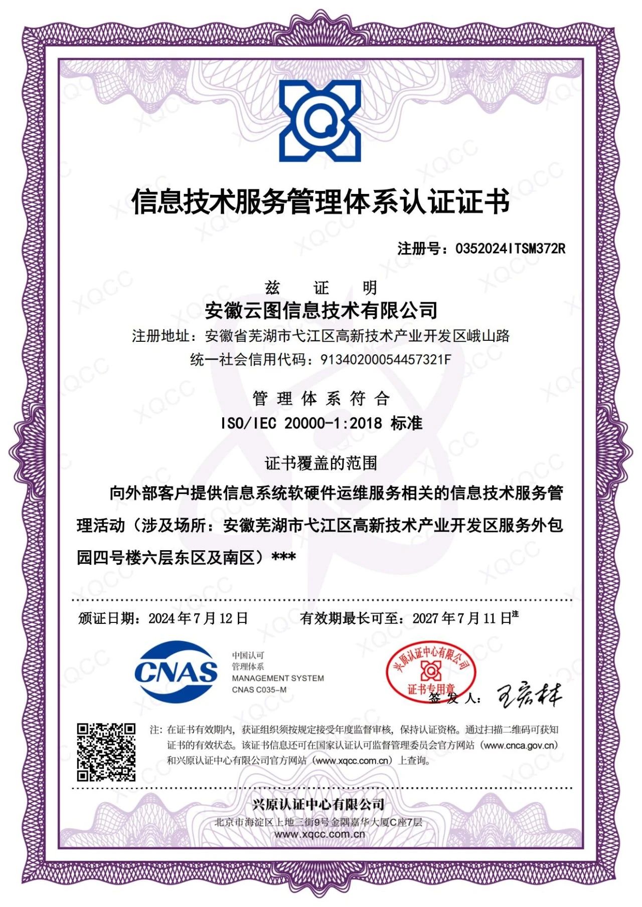 7月9日,我司进行了ISO20000信息技术服务管理体系的认证审核,并顺利通过了评审组老师的全面考核。此次认证的顺利通过,不仅是对我司信息技术服务管理能力的肯定,也是对我司专业团队技术能力的认可。我们将继续秉持“客户至上、服务为本”的理念,不断优化和完善信息技术服务管理体系,为客户提供更加优质、高效的信息技术服务。