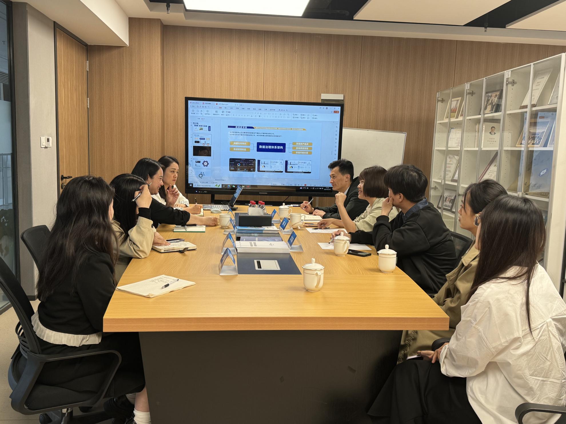 ? ? ? 4月19日,安徽电子信息职业技术学院软件工程学院副院长郭丽、软件技术教研室主任胡六四一行到安徽广东会信息技术有限公司交流,我司总经理郑美惠陪同交流并参加座谈。