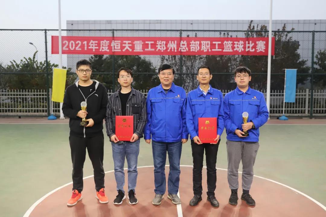 历经12天的激烈角逐,10月29日下午,恒天重工总部2021年度职工篮球比赛在喝彩声和欢呼声中圆满落下帷幕。最终,重装公司代表队力压群雄获得比赛第一名,加工事业部代表队获得第二名,化纤事业部代表队和非织造布事业部代表队获得并列第三名,重装公司代表队队员赵守彪获得本次赛事的“最佳球员”称号。公司工会主席李隽永,公司党委委员、公司工会副主席郭富勤,公司党委委员、党委组织部部长桑高峰为获奖代表队和最佳球员现场颁发了证书和奖杯。